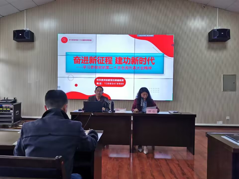 本网讯:(李杰 图文报道)为深入学习贯彻党的二十大精神,推动学习贯彻习近平新时代中国特色社会主义思想主题教育走深走实,5月9日,必赢76net线路在志学楼506报告厅举办学习贯彻党的二十大精神专题讲座,邀请贵州省委党校机关党委委员、科社教研部主任郝建教授作题为“奋进新征程,建功新时代”—学习贯彻党的二十大精神专题辅导。公司党委书记卿春主持,学院全体教职工、员工党员代表100余人参加。